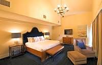 Decorated with the feel of a beach cottage, these rooms offer designer lamps, textured walls and white subway tile bathrooms create a high-style environment.